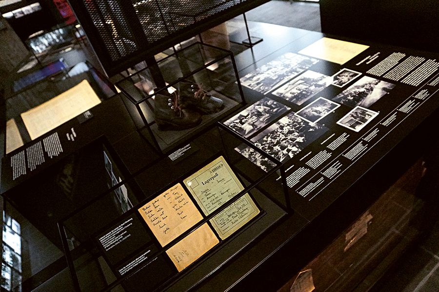 While the exhibition essentially follows a thematic approach, the two timelines on the ground and first floors allow interested visitors to delve into the details of the story.