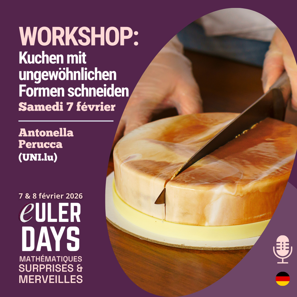 - WORKSHOP : Kuchen mit ungewöhnlichen Formen schneiden – "In der mathematischen Welt gibt es sogar unendliche Kuchen !" (Antonella Perucca – Uni.lu) – DE
