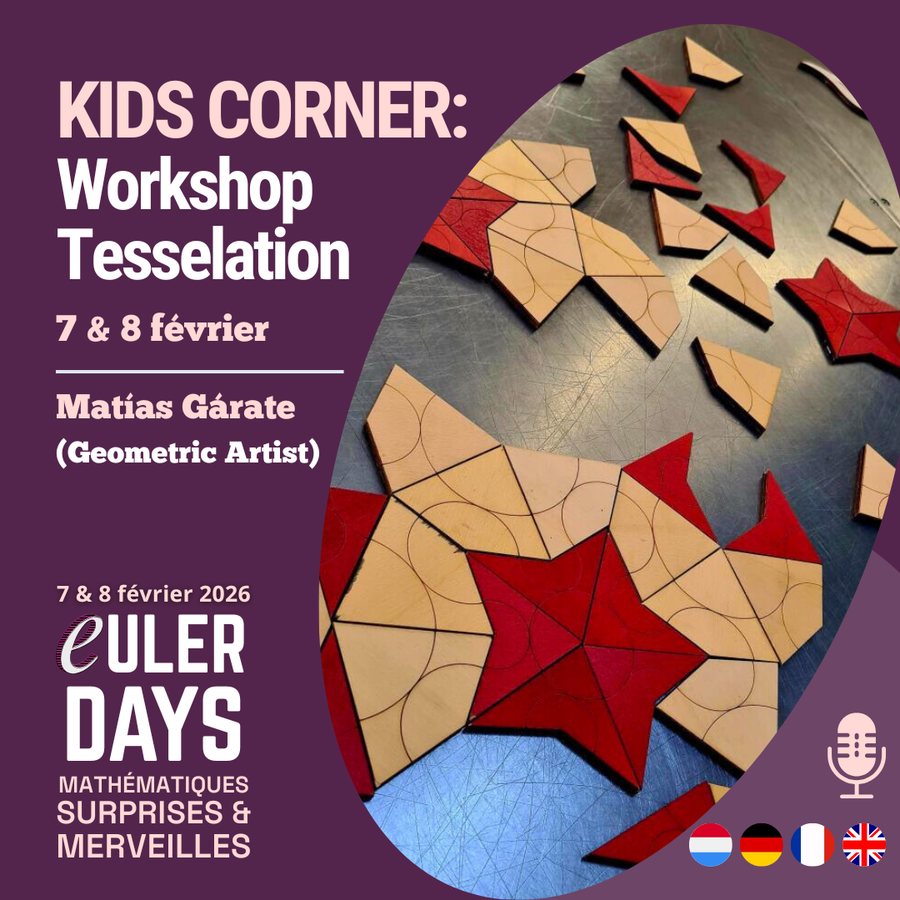 - KIDS CORNER : Workshop Tesselation – "Créez des pavages artistiques et des puzzles mathématiques" (Matías Gárate – Geometric Artist) – FR, LU, DE & EN