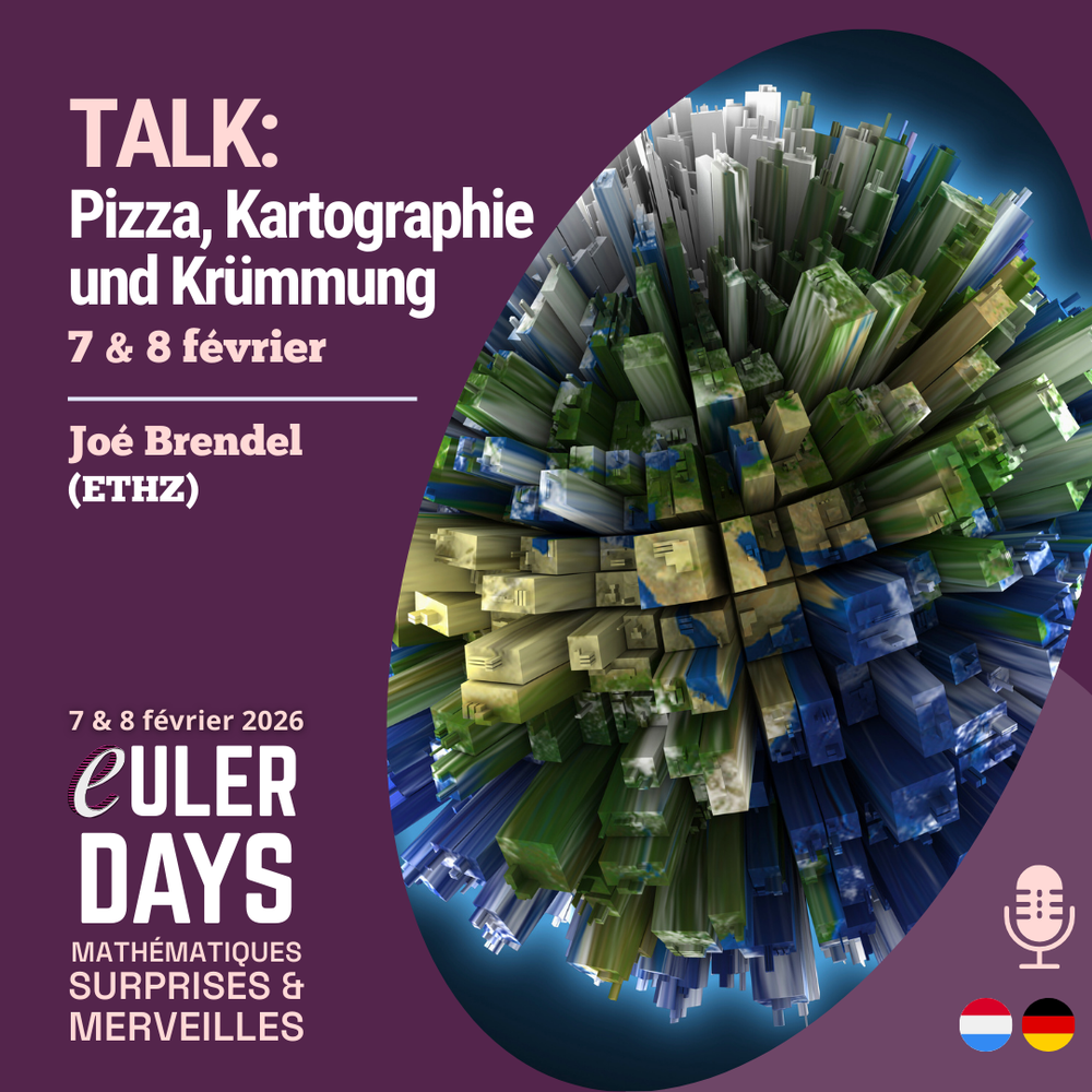 - TALK : Pizza, Kartographie und Krümmung – "Was verbindet Pizza essen, Wellblechdächer und Kartographie?" (Joé Brendel – ETHZ) – DE & LU