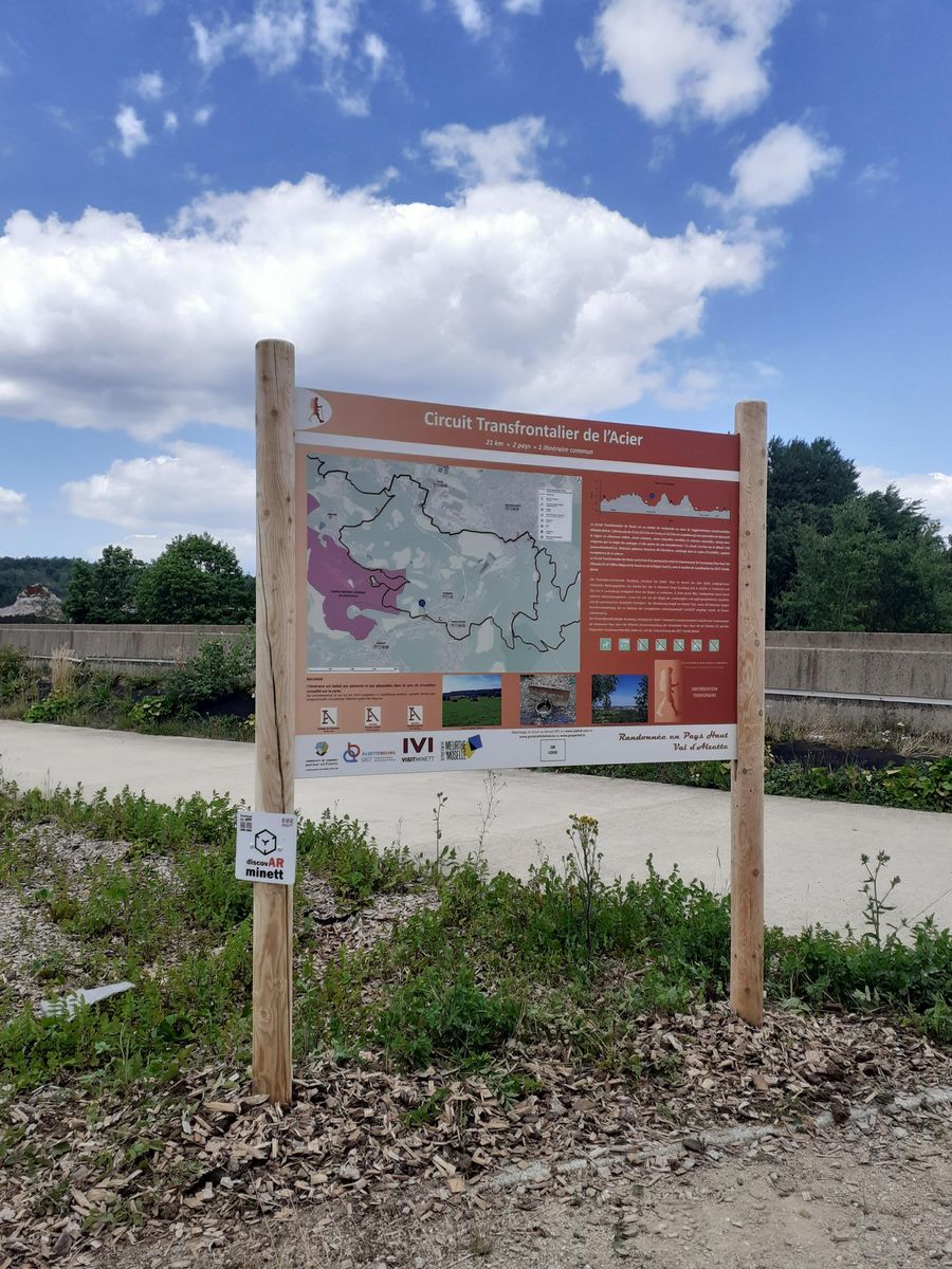 Découvrez à travers ce parcours circulaire de 22 kilomètres à quel point l'histoire des deux régions est étroitement liée ; ce sentier transfrontalier a été conçu en collaboration avec la "Communauté de communes du Pays Haut Val d’Alzette" (CCPHVA) et forme une boucle à travers les anciennes régions minières des deux pays. Du côté luxembourgeois, le chemin passe ainsi entre Belvaux et Esch-sur-Alzette, et traverse la réserve naturelle "Ellergronn" en suivant une partie du parcours régional "Minett Trail". En chemin, il passe également par le quartier de Belval avec ses hauts fourneaux impressionnants. Vous pouvez y profiter d'un point de vue à près de 40 mètres de hauteur sur une grande partie de la région. Côté luxembourgeois, vous découvrirez donc particulièrement l'histoire de la chaîne de transport et de la transformation de l'acier.