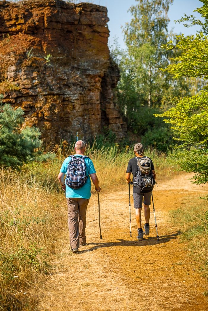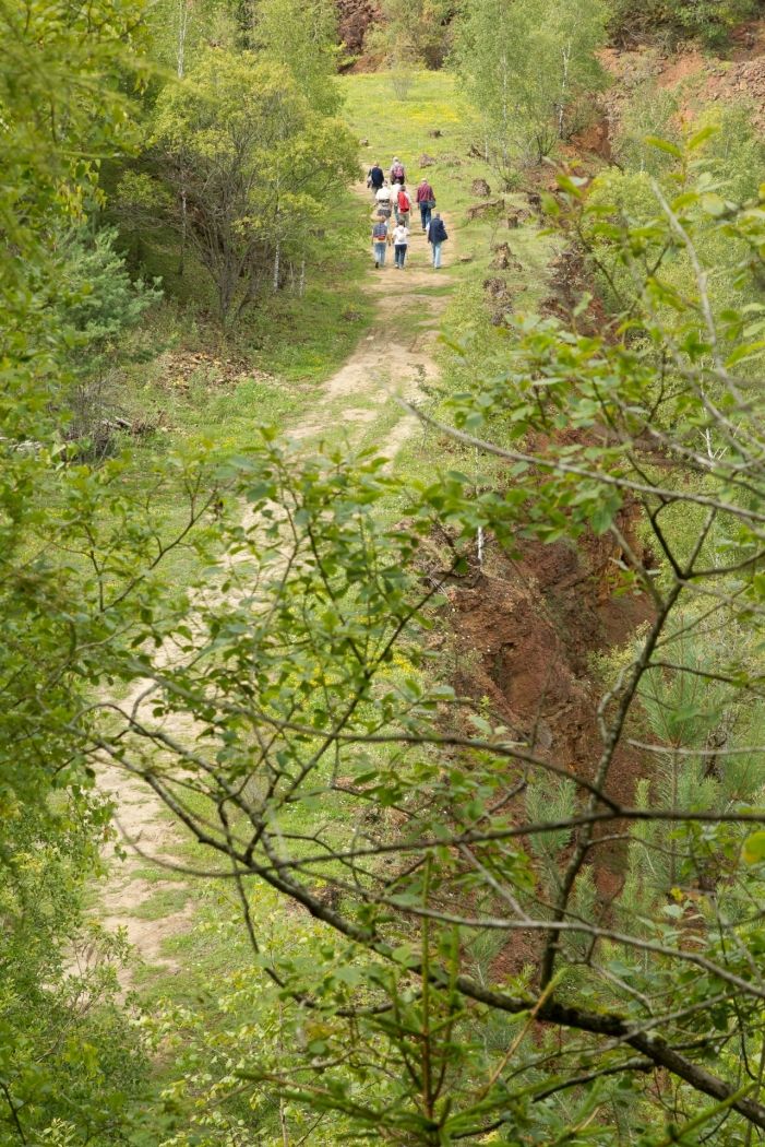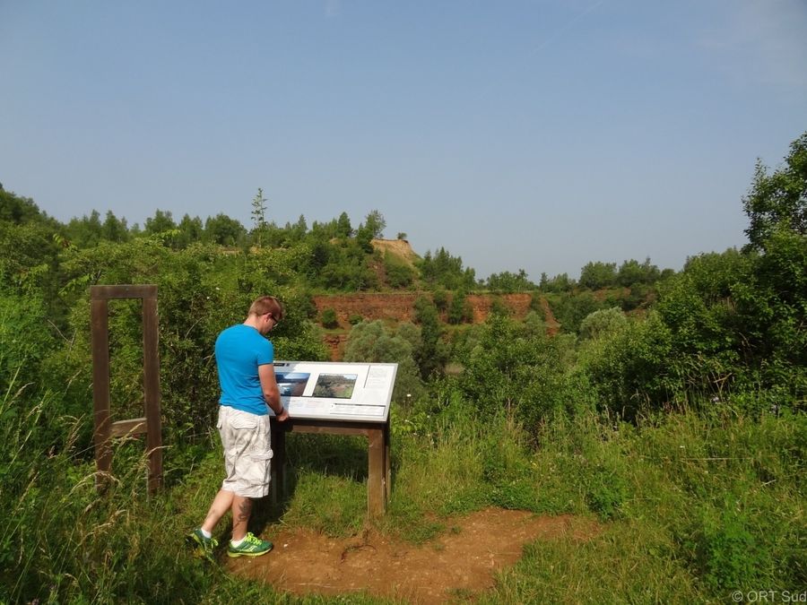 On the geological route "Giele Botter" you will learn more about the history of ore mining and deposits in the "Giele Botter" open-pit mining area. The 2.5-kilometer-long hiking trail focuses on old mine entrances, open-pit mining in general, and fossils uncovered during work. The path leads through today's nature reserve "Prënzebierg - Giele Botter".