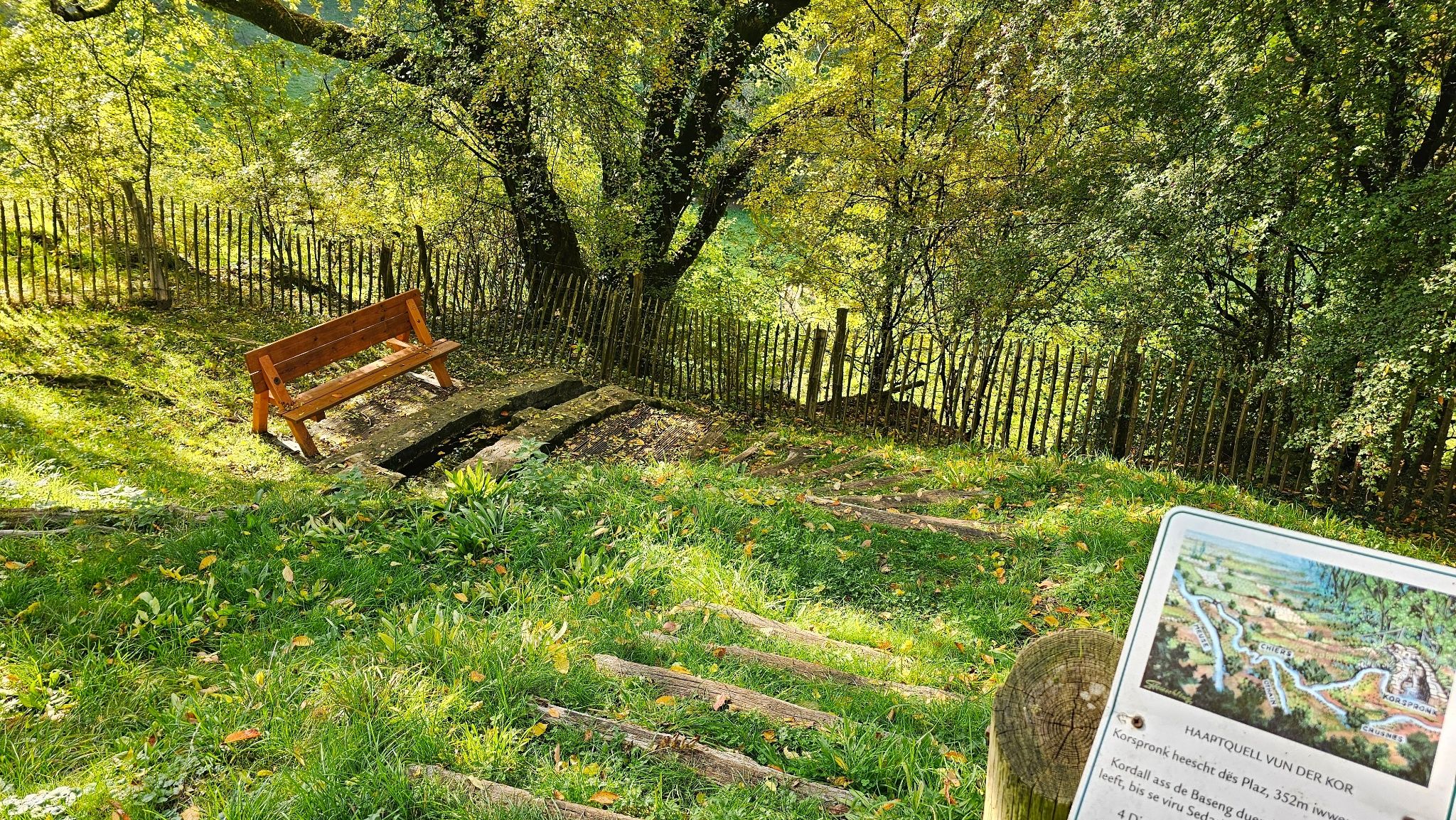 The Chiers is a calm, natural river that rises in the south of Luxembourg and flows through a varied landscape of forests, meadows and old industrial sites on to Belgium and finally France. What is once 140 kilometers long and also serves as a border river has a very modest origin here in Luxembourg: Not far from the city center of Differdange, the third largest city in the country, is the source of the "Kor", as the Chiers is called here, at an altitude of around 380 meters.
